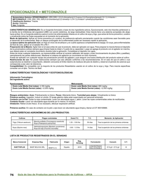 DUETT®PLUS BASF BOLIVIA SRL. BASF S. A. España 2019 EMULSIONABLE 37,5 g/l + 27,5 g/l III